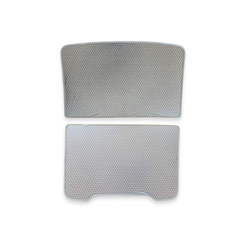 Our Tesla Model Y Juniper sunshade is designed not only for function and protection but also for style. The elegant design integrates seamlessly into your vehicle’s interior, giving your Tesla a premium look. The interior is black, while the exterior features reflective fibers that effectively repel sunlight.
